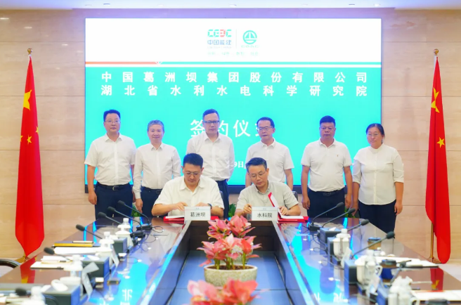 座谈现场 陈刚对王平章一行表示欢迎。他说,葛洲坝集团因水而生、因水而兴。当前,公司以服务国家重大战略性工程建设为使命,深度聚焦“打造突出工程建设能力”功能定位,全面提升水利水电领域核心竞争优势。湖北省水科院技术积累深厚、行业业绩突出、科研实力强劲,高度契合葛洲坝主业发展。期待以本次签约为契机,与湖北省水科院紧密携手,围绕水利、水电、抽水蓄能、水环境治理等领域,推进市场开发、技术创新、课题研究、装备研发等方面全方位、多层次、互补性务实合作,共同实现高质量发展。 王平章感谢葛洲坝集团的关心与支持。他说,湖北省水科院是省水利厅所属公益事业单位,长期致力于湖北省重大水问题研究、先进实用技术研发、成熟适用技术推广以及水利相关规划、设计与咨询服务,业务范围涵盖行业各领域。葛洲坝集团是水利水电建设领域的“主力军”,品牌知名度高、市场影响力大。双方战略方向趋同,发展优势互补,合作空间巨大。湖北省水科院愿充分发挥技术研究、项目规划、市场信息、行业数据、咨询服务等优势,清单化、项目化推进双方战略合作落实落地,实现互利共赢、共同发展。 签约仪式 湖北省水科院副院长周念来,双方相关部门、单位负责人参加座谈。